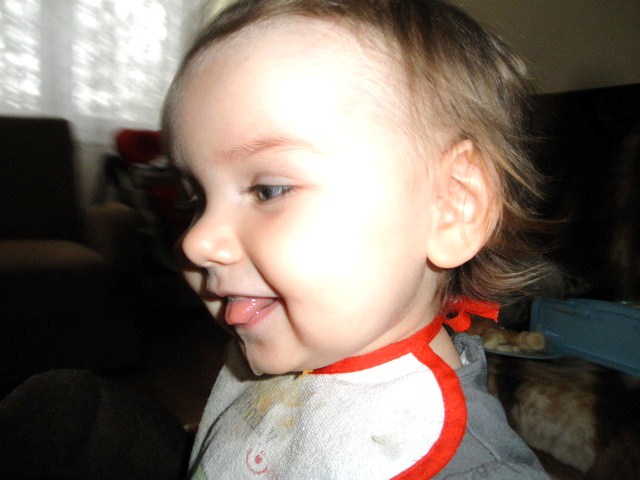 Majce, jak widać humor dopisuje pomimo zmiany otoczenia i wyżynających się dolnych trójek.